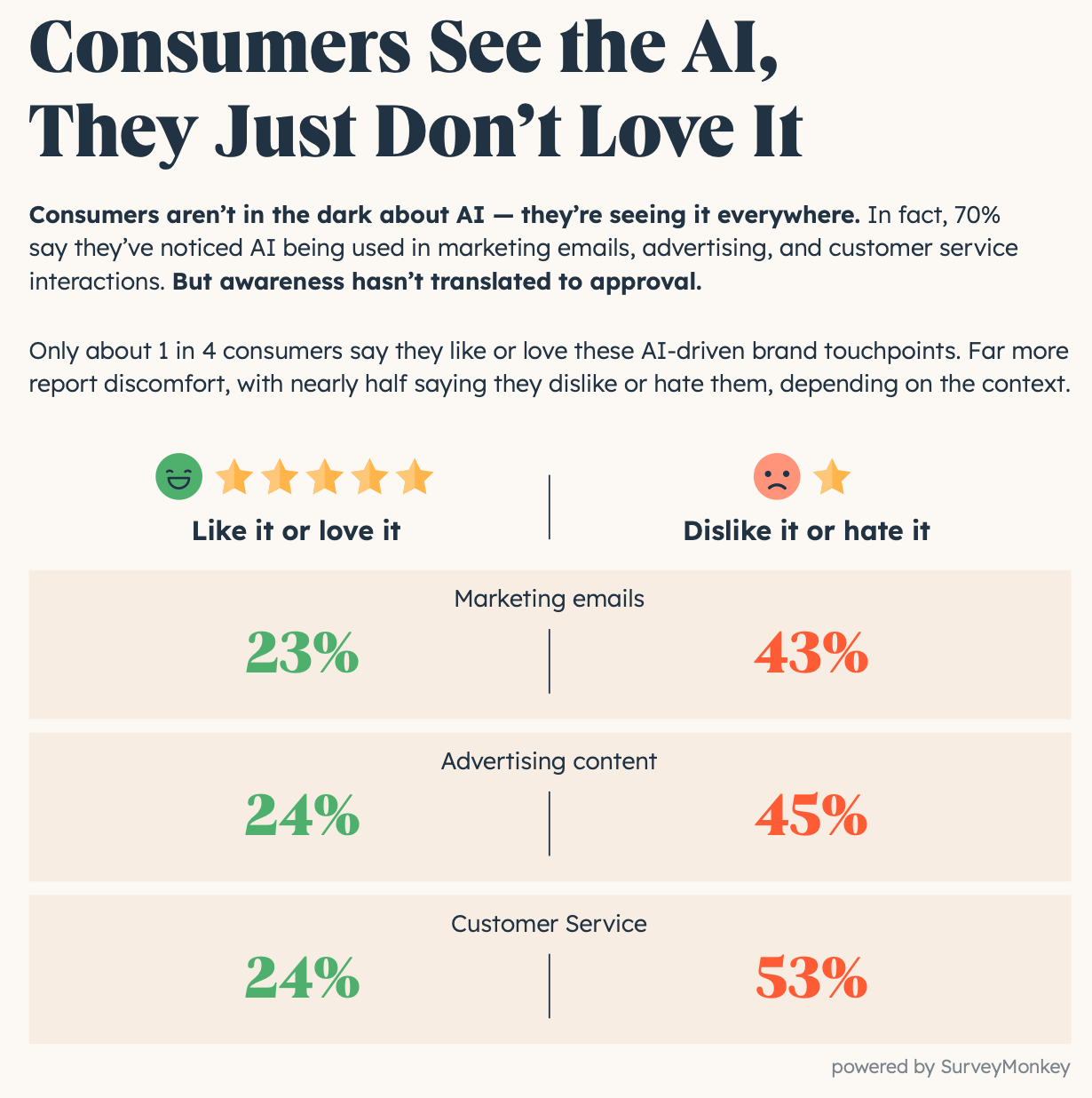 70% of consumers say they've noticed AI being used in marketing emails, advertising, and customer service.